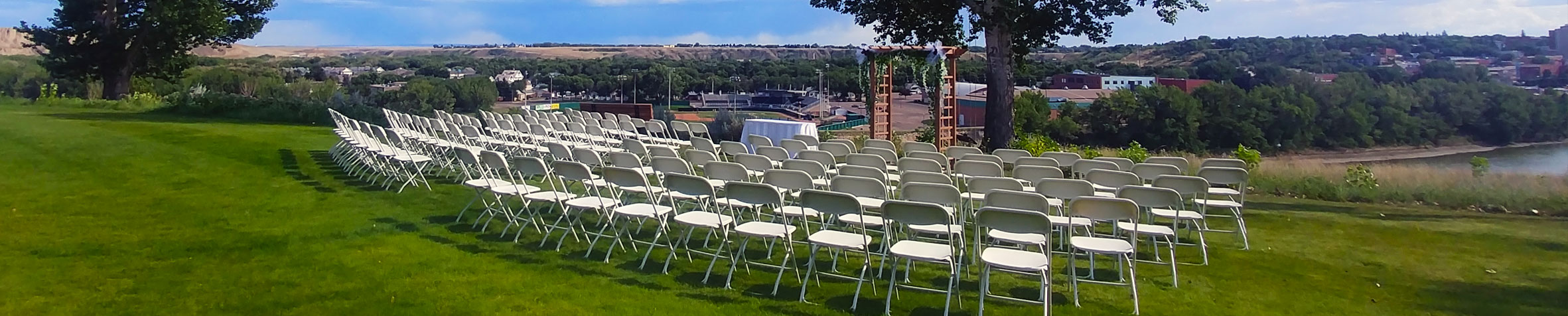 Located on the North East side of Medicine Hat, our facility boasts a spacious room that can accommodate up to 160 people. Large South facing windows provide natural light and stunning panoramic views of the river valley and our beautiful city, while the North facing windows showcase parts of our award-winning golf course. Our experienced staff will work alongside you to ensure your day is perfect. They take pride in each event as if it was their own special day.